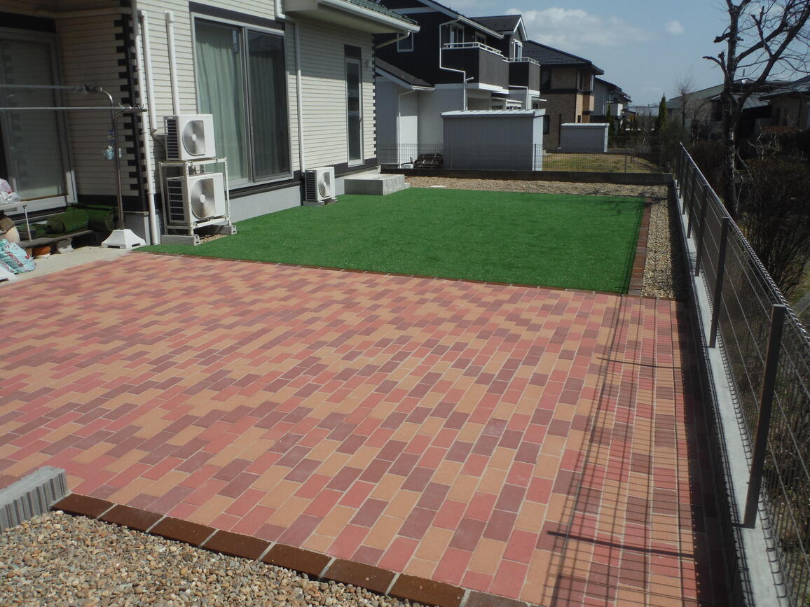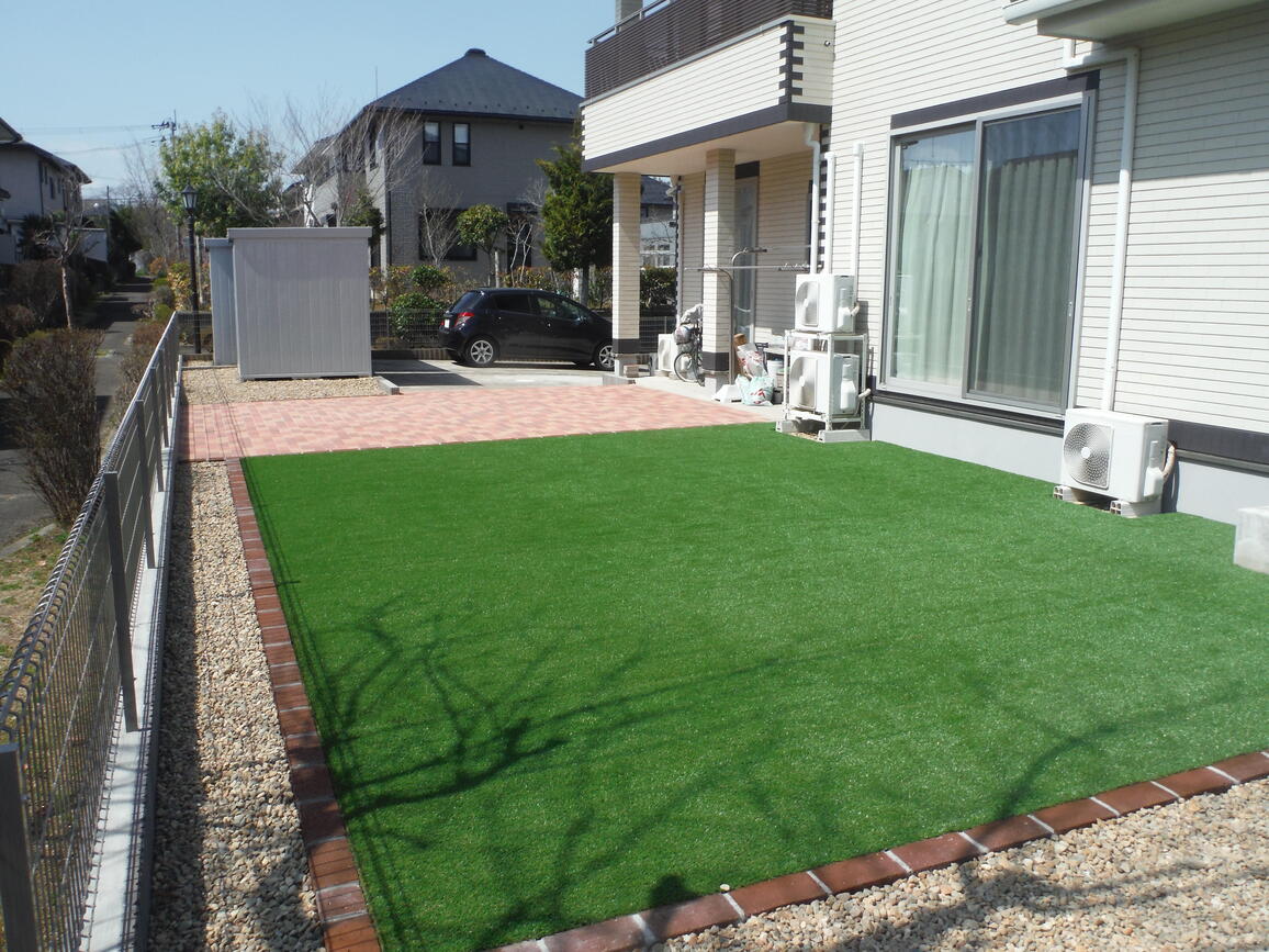 高級人工芝とインターロッキングで草取りから解放