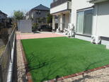 三世帯ご家族ということもあり、それぞれの世代が皆で楽しめるお庭をコンセプトにご提案しました。人工芝でお子さんが思いっきり遊べる空間を確保し、インターロッキングではご家族皆さんでバーベキューも楽しめちゃいます♪