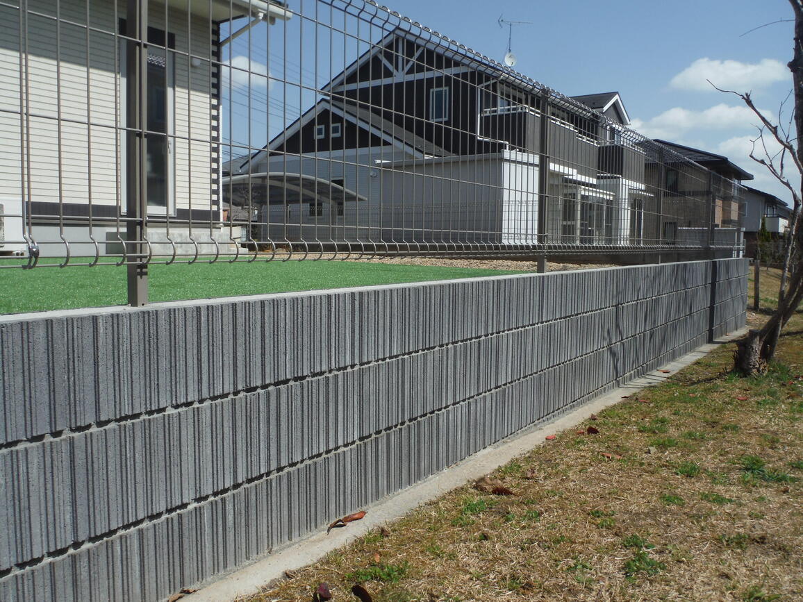 南側の法面を土留してフェンスをつけることがメインで、将来的に家族が車椅子生活になった時に玄関から家に入れない(階段が7段あり)のでスロープにしようか、自転車置場もあったらいいな。ここから外構工事の相談をスタートしました。自転車置場は早々に、構想から外しましたが人工芝とインターロッキングの図面を見て、今まで使っていない庭がもったいないなと改めて感じました。予算は倍以上になりましたが、とてもきれいに仕上げていただき満足しています。