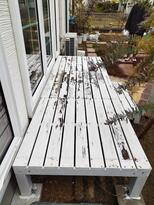 白で統一したお庭の中で、ペンキが剥がれ浮いてしまっていたウッドデッキが一新され良かったです。今後はペンキを塗り替える必要もないので気持ちが楽になりました。