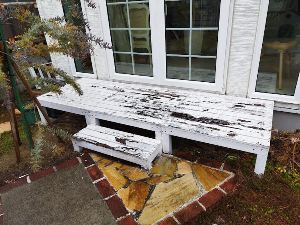 ●木で作ったウッドデッキの腐食が進み残念な印象