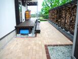 天然素材のレンガは時間が経つと風合いが増し、長く使う外構にはピッタリの商材です。今回は既存の薪棚前への施工をご提案し、薪の木屑の掃除のしやすさも考慮しながら、雑草対策にもなる仕上がりになりました。