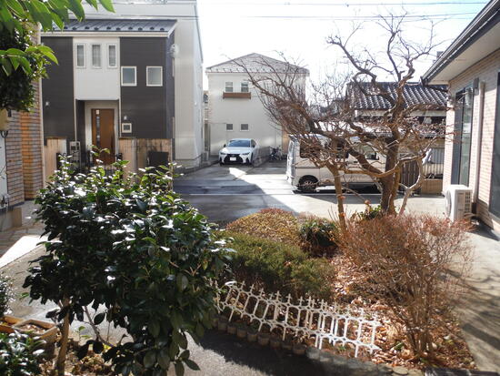 ●通りに面した角地のお庭と歩道から丸見えの玄関ドア