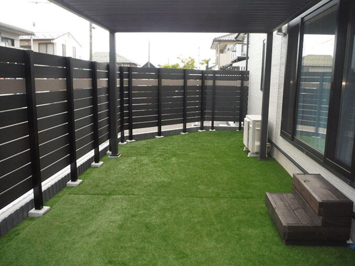 目隠しフェンスでお庭をぐるっと囲い、お子様が道路に飛び出さないよう配慮したお庭に仕上げました。同時に外からの視線も遮ってリビングも格段に過ごしやすい空間に生まれ変わりました♪