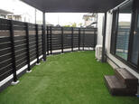 お客様の希望で、リビングから裸足で直接お庭に出れないかとご相談いただきました。 人工芝とテラス屋根で裸足はもちろん、少しの雨も気にならないお庭に仕上げました。施工中から靴を脱いで作業し、過ごしやすい環境づくりに努めました。