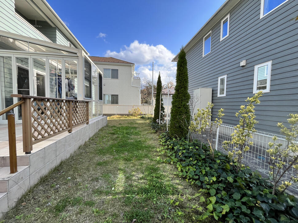 タイルデッキの階段は、これまで駐車場方向にしか行けませんでしたが、既存の手すりを加工し、庭方向にも降りれるように仕上げました。これだけでお庭に降りるハードルがグッと下がるので、お庭に出るのがますます楽しみになりますね。
