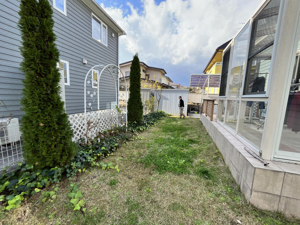 5年程前から天然芝を財った庭にクローバーをはじめ、雑草の浸食に悩まされていたので『草取りからの解放』が今回のテーマでした。